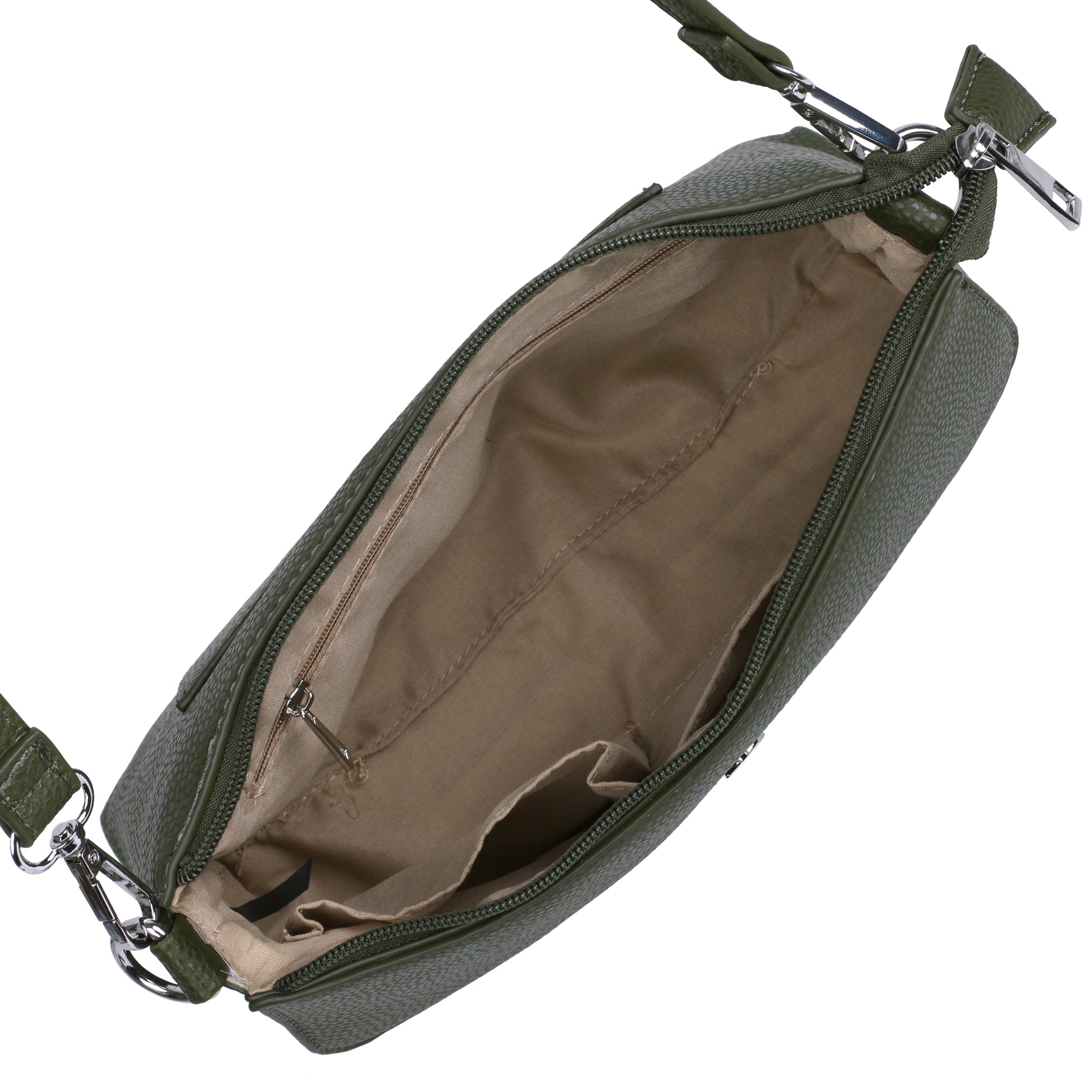 A snap-front flap hides a handy slip pocket, while the roomy zippered interior offers smart organization. A discreet back slip pocket keeps your phone or keys close. Wear it as a crossbody, shoulder bag, or clutch with the adjustable, removable strap.